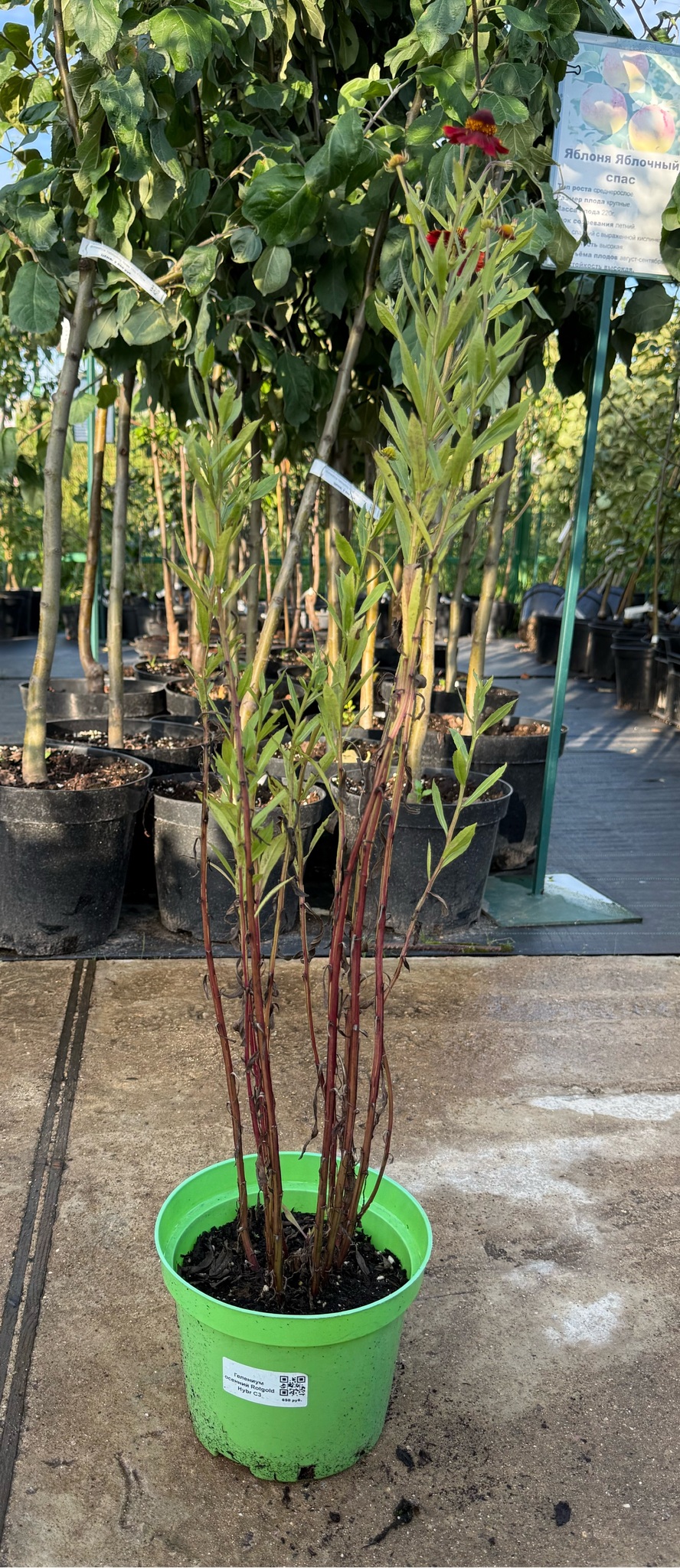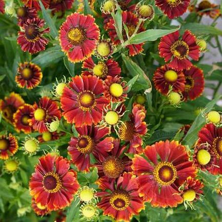 Прямостоячий многолетник с крепкими стеблями высотой до 120 см. Листья удлиненные, конические, ярко-зеленые. Цветки коричнево-красные с желтоватыми краями 4-5 см в диаметре. Цветение с июля до заморозков.