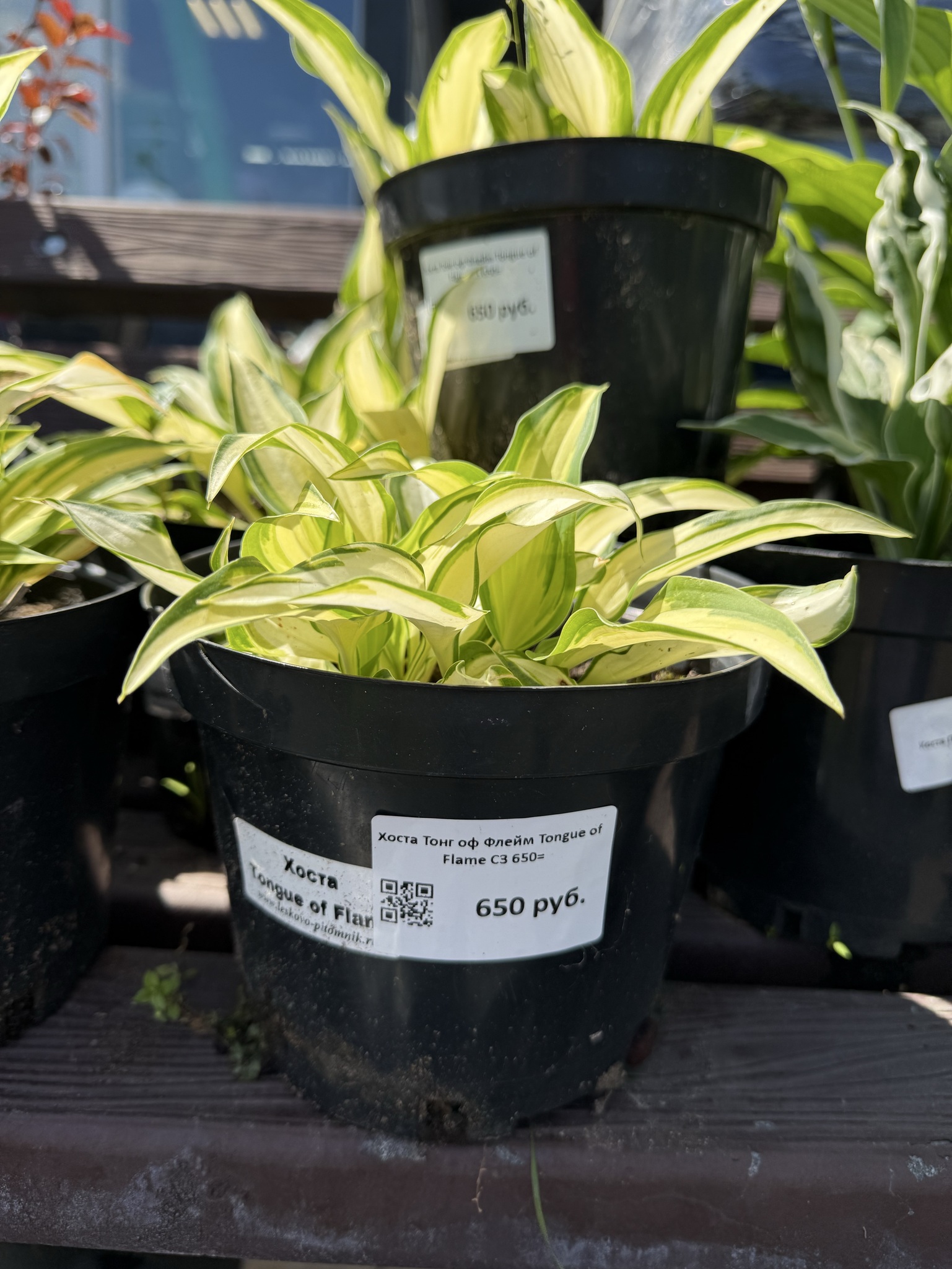 Эффектный сорт. Высота до 30 см, диаметр до 40 см. Листья сердцевидные, заостренные, гофрированные. Окраска тёмно-зеленая с крупным кремово-белым центром. Цветоносы с красноватым оттенком. Цветки светло-лавандовые. Цветет в июле-августе. Место полутенистое. Зона 3 (до -34ºС).