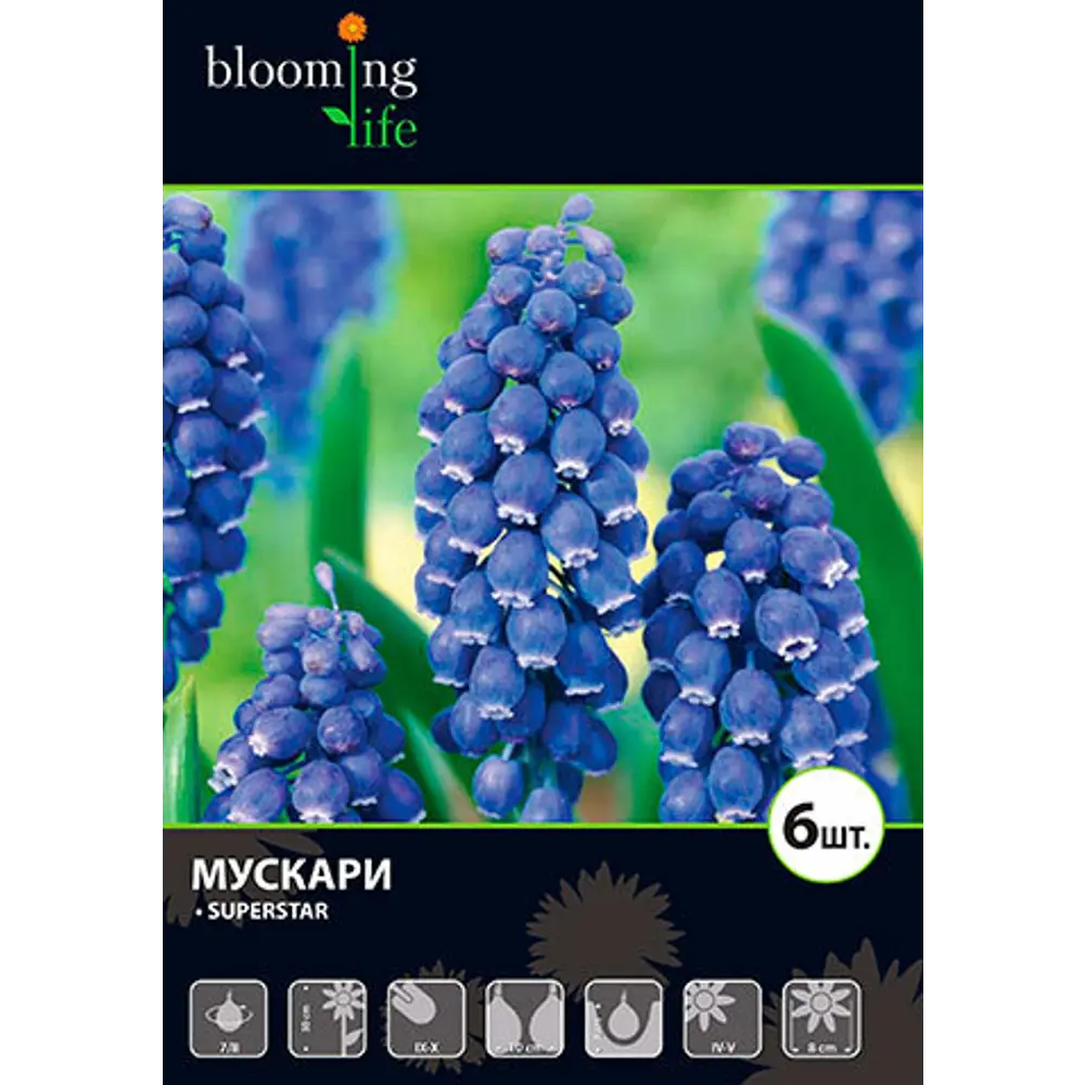 Мускари Суперстар — это сорт мускари, который отличается темно-синими цветками с белой каймой. Растение достигает высоты до 25 см и обладает сильным ароматом. Растение быстро и активно разрастается, а также радует обильным, пышным цветением. Мускари может использовать для оформления поляны или газон перед домом — в период цветения можно получить шикарный цветочный ковер. Замечательно эта культура смотрится также в альпинариях, цветниках, альпийская горках, в бордюрных горках и в горшках для патио. Мускари хорошо растет и цветет как на открытом солнечном участке, так и в тени под деревьями, что позволяет выращивать их практически в любой части сада. К почве сорт не сильно требователен, но лучше всего он растет и развивается на плодородном и хорошо обработанном участке. Луковицы высаживают в открытый грунт с августа по октябрь. Если участок бедный, то в него можно внести компост или перегной. Полив растениям практически не требуются, так как цветочки распускаются весной, когда в почве ему много влаги. Специальные подкормки не требуются. Осенью посадки можно замульчировать органикой — это может быть торф, компост, перегной или сухие листья. Эти компоненты будут подпитывать растения по мере перегнивания.
