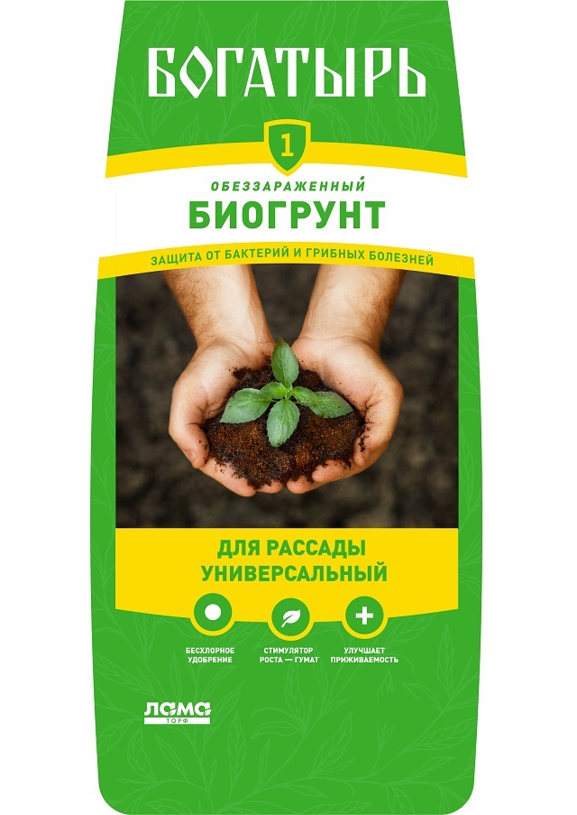 Обеззараженный биогрунт Богатырь Для рассады универсальный 60 л