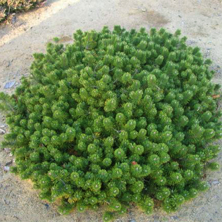 Карликовый кустарник с компактной овальной формой кроны в молодом возрасте, и несколько подушковидной ассиметричной в более зрелом. В высоту кустарник достигает 1 м, в ширину 1,5 м. Очень медленнорастущая форма, годовой прирост 4 см в высоту и 6-8 см в ширину.