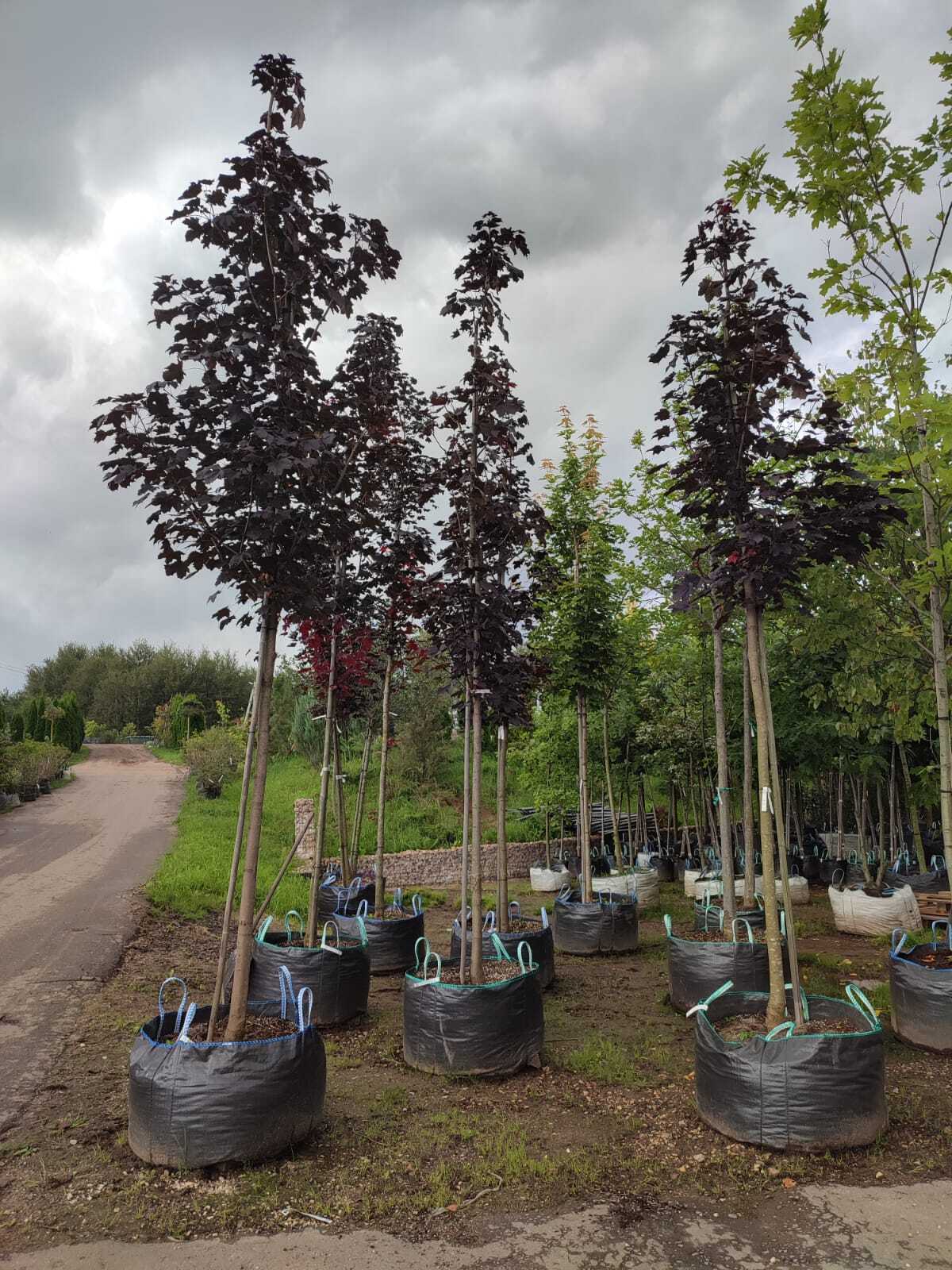 Дерево высотой 12-15 метров. Крона равномерная, плотная, ширококоническая, в диаметре достигает до 6-8 метров. Кора ствола темно-серая или зеленовато-серая. Побеги светло-коричневые. Листья 5-7 лопастные, крупные, насыщенно темно-красно-коричневые, матовые, на длинных черешках. Во время распускания ярко красные. Зеленовато-желтые цветки появляются незадолго до и во время распускания листьев. Плоды крылатки 3,5-4,5 см длиной.