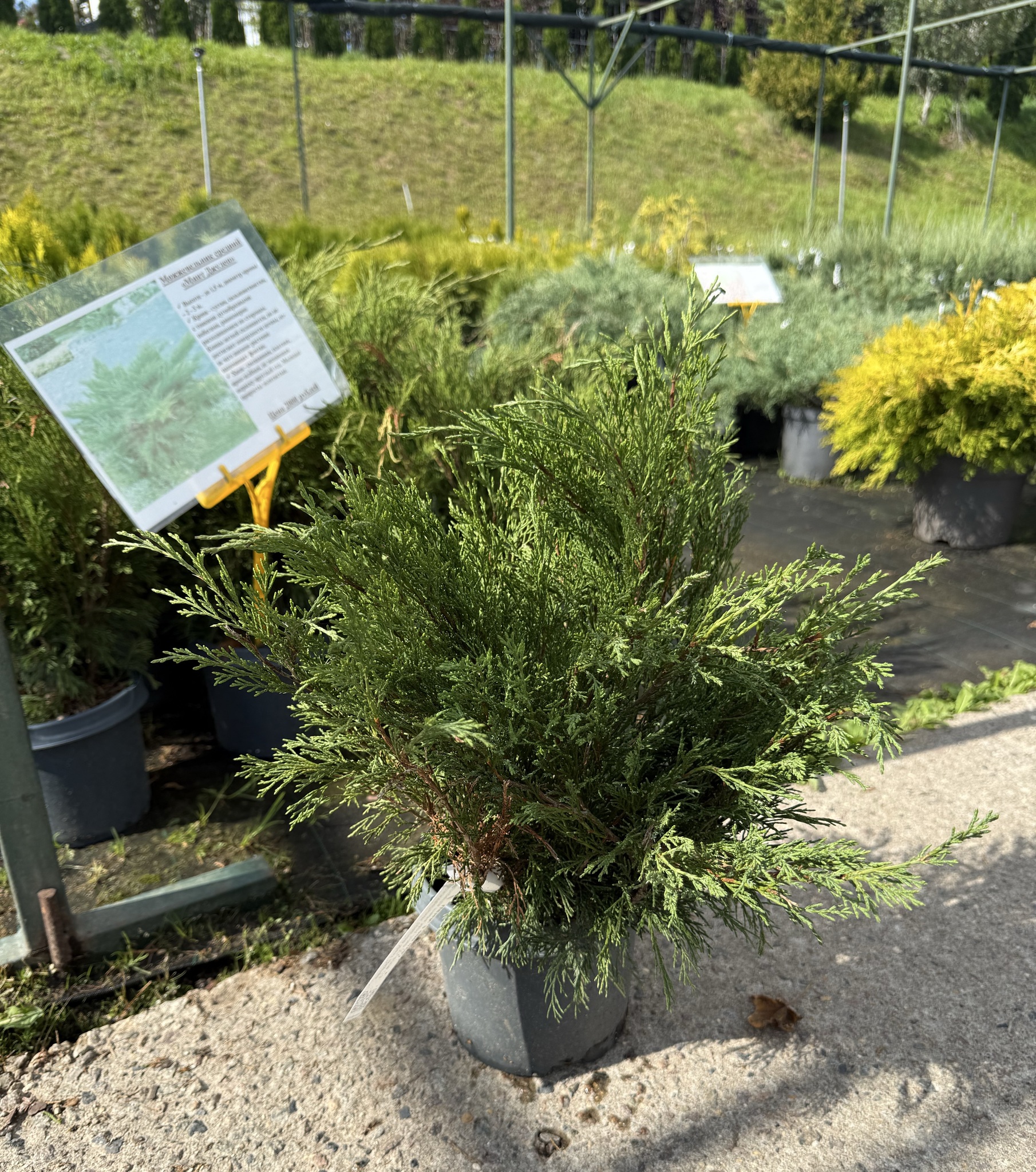 Широкораскидистый плотный хвойный кустарник неправильной формы, быстрорастущий. Высотой до 3 и диаметром до 5 метров.