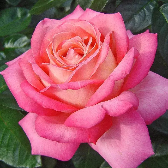 Роза получена от знаменитого сорта Пис (Peace) в Чикаго. Крупные цветки до 15 см в диаметре состоят из 60 лепестков и обладают умеренным ароматом чайых роз. Основания лепестков окрашены в желто-оранжевые тона, плавно переходящие в кораллово-розовые края. Кусты достигают 120-150 см высотой. Листва кожистая, темно-зеленая, блестящая, подвержена черной пятнистости.