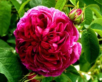 Одна из самых популярных галльских роз. Цветки роскошные, диаметром 12-15 см, густомахровые, красивой симметричной формы, изменчивой окраски, смешанных розовато-пурпурно-малиновых тонов, в соцветиях по 3. Аромат сильный. Цветение однократное, очень обильное, в июне на побегах прошлых лет. Листва тёмно-зелёная, матовая, жёсткая, слабоустойчивая к мучнистой росе, среднеустойчивая к чёрной пятнистости. Побеги дуговидные, почти без шипов, гнутся под тяжестью цветков. Куст высотой 100-150 см и шириной 120-150 см. Теневынослив.