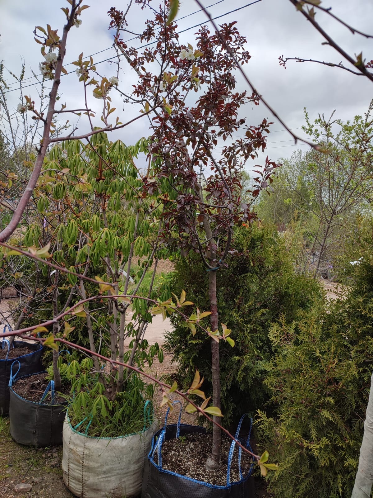Листья суженные, с глянцевой поверхностью, опушенные, эллиптической или продолговато-яйцевидной формы, длиной до 8 — 12 см, очень красивого темно-фиолетового (пурпурного) окраса. К осеннему сезону листья становятся чуть более светлыми и приобретают насыщенный красный (багряный) окрас, не теряя при этом своей декоративности.
